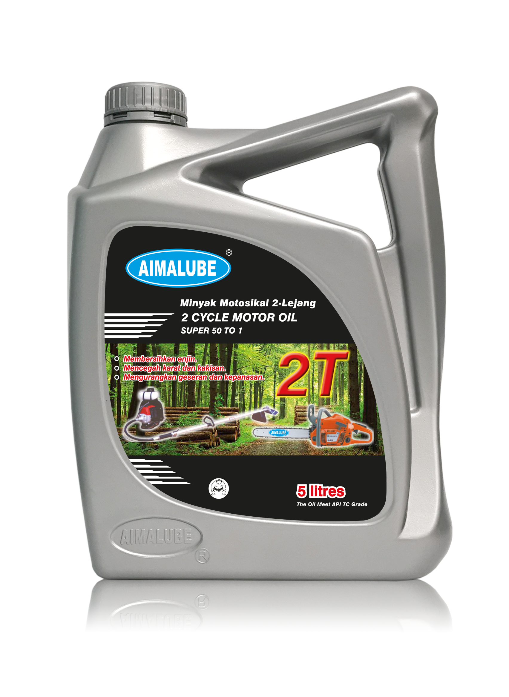 Aimalube 2-T Oil meets and exceeds: API TC. Aimalube 2-T Oil is made from solvent refined paraffini base stock fortified with anti-oxidants and anti-rust additives. It is recommended for 2-cycle air cooled gasoline engines. It can be used in injection or in petrol / oil mixture lubrication. |
