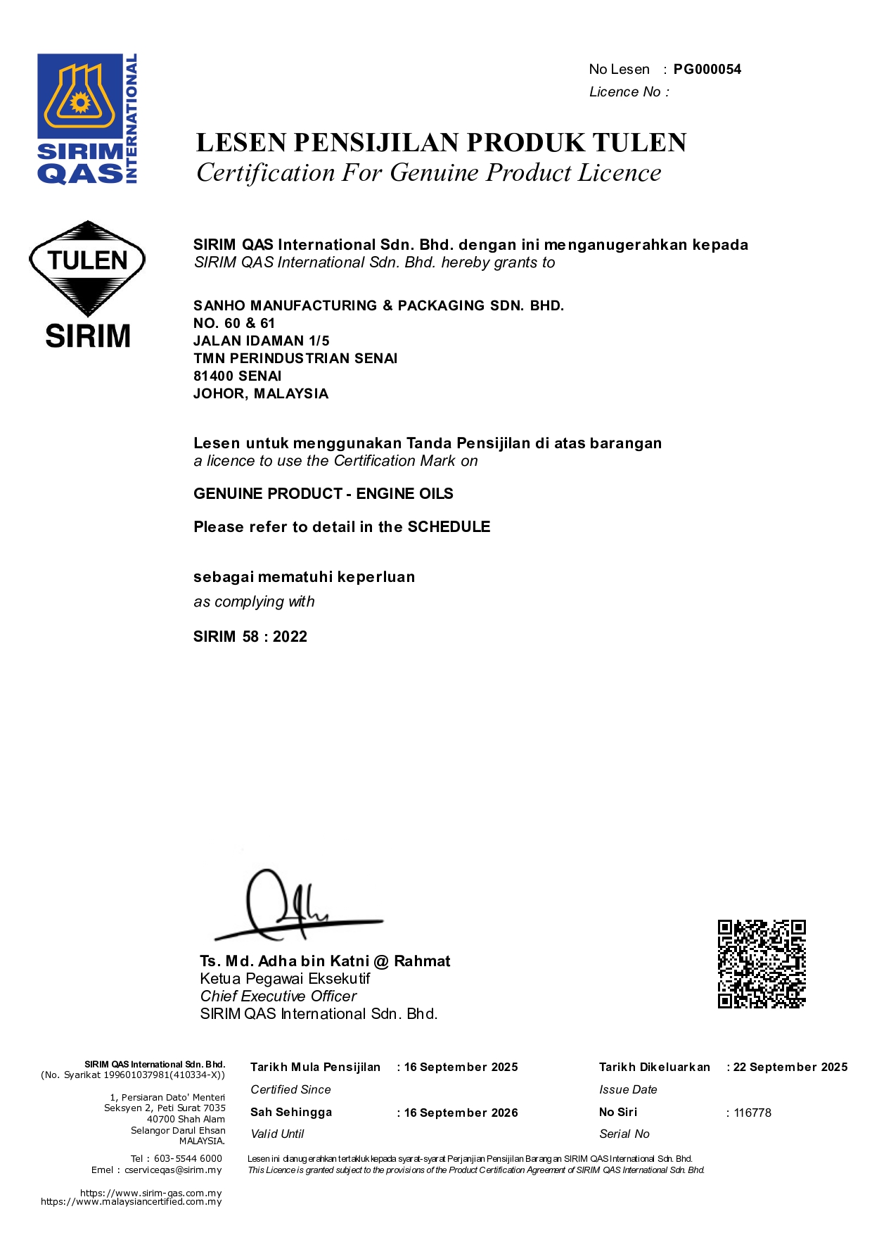 The Ministry of Domestic Trade and Cost of Living (“KPDN”) is committed to address the issue of counterfeit engine oils through the implementation of the Trade Descriptions (Certification and Marking of Engine Oil for Motor Vehicles) Order 2024 (“the Order”) by empowering SIRIM QAS International Sdn Bhd (“SIRIM QAS”) as the competent authority. This initiative applies specifically to motor vehicles, with their definition and classification aligned with those stipulated under the Road Transport Act 1987 for the purposes of the Guidelines.