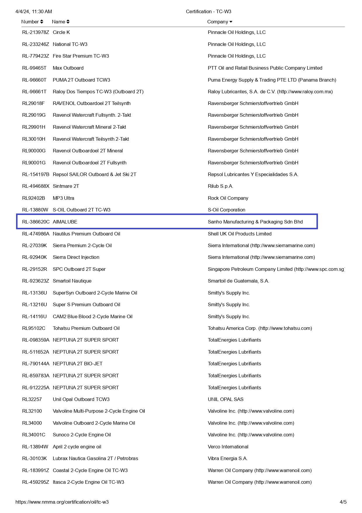 Once lubricants have demonstrated the necessary lubrication performance qualities needed for TC-W3® certification testing by NMMA-approved laboratories, NMMA licenses those two-stroke lubricants to be marketed to the public. TC-W3® oils are licensed around the world and are recommended for use by two-stroke engine manufacturers.